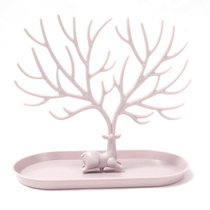 Vibe Geeks Antlers Tree Tower Jewelry Display Stand for Ring Earrings Necklace Bracelet - Pink Basic Model