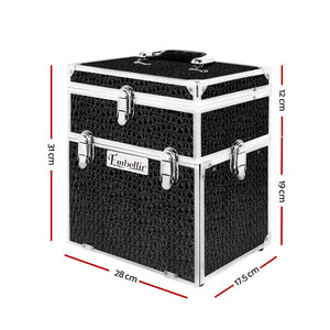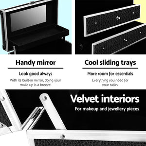 Embellir Portable Cosmetic Beauty Makeup Carry Case with Mirror - Crocodile Black
